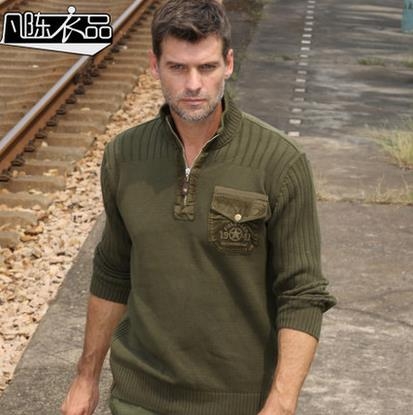 > 凡陈衣品厚款男毛衣 宽松大码针织衫 军装休闲户外棉线衫外套